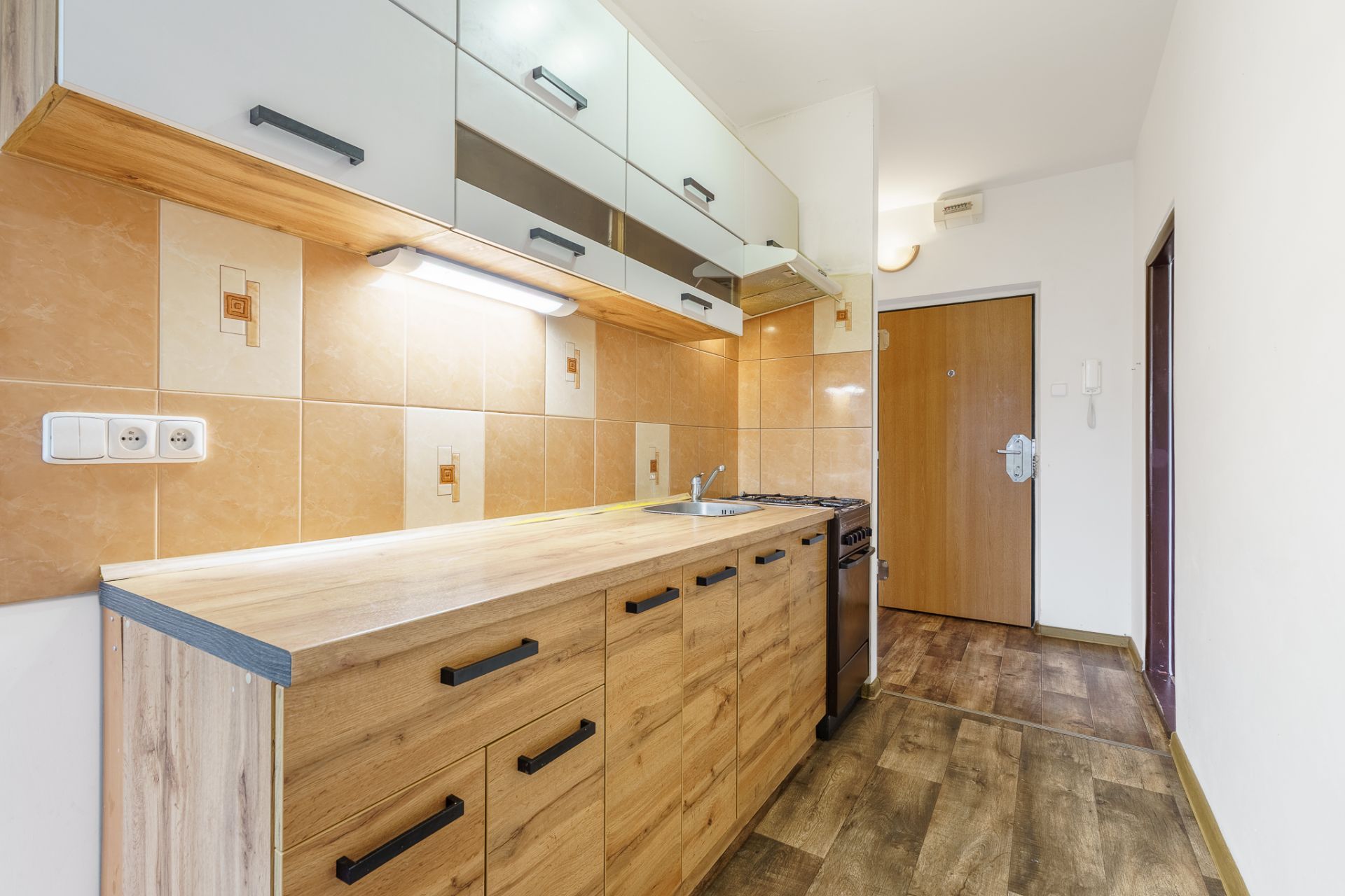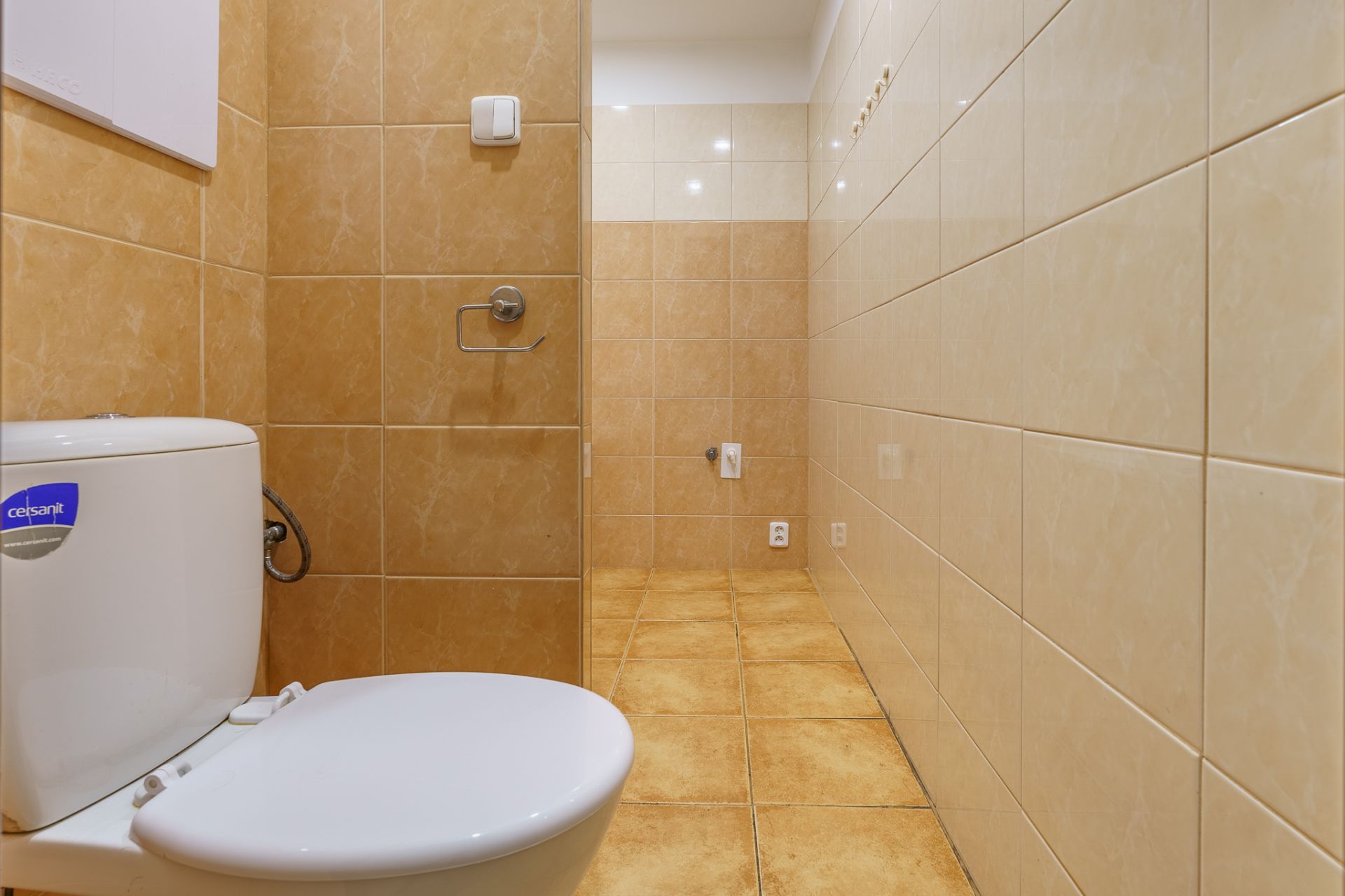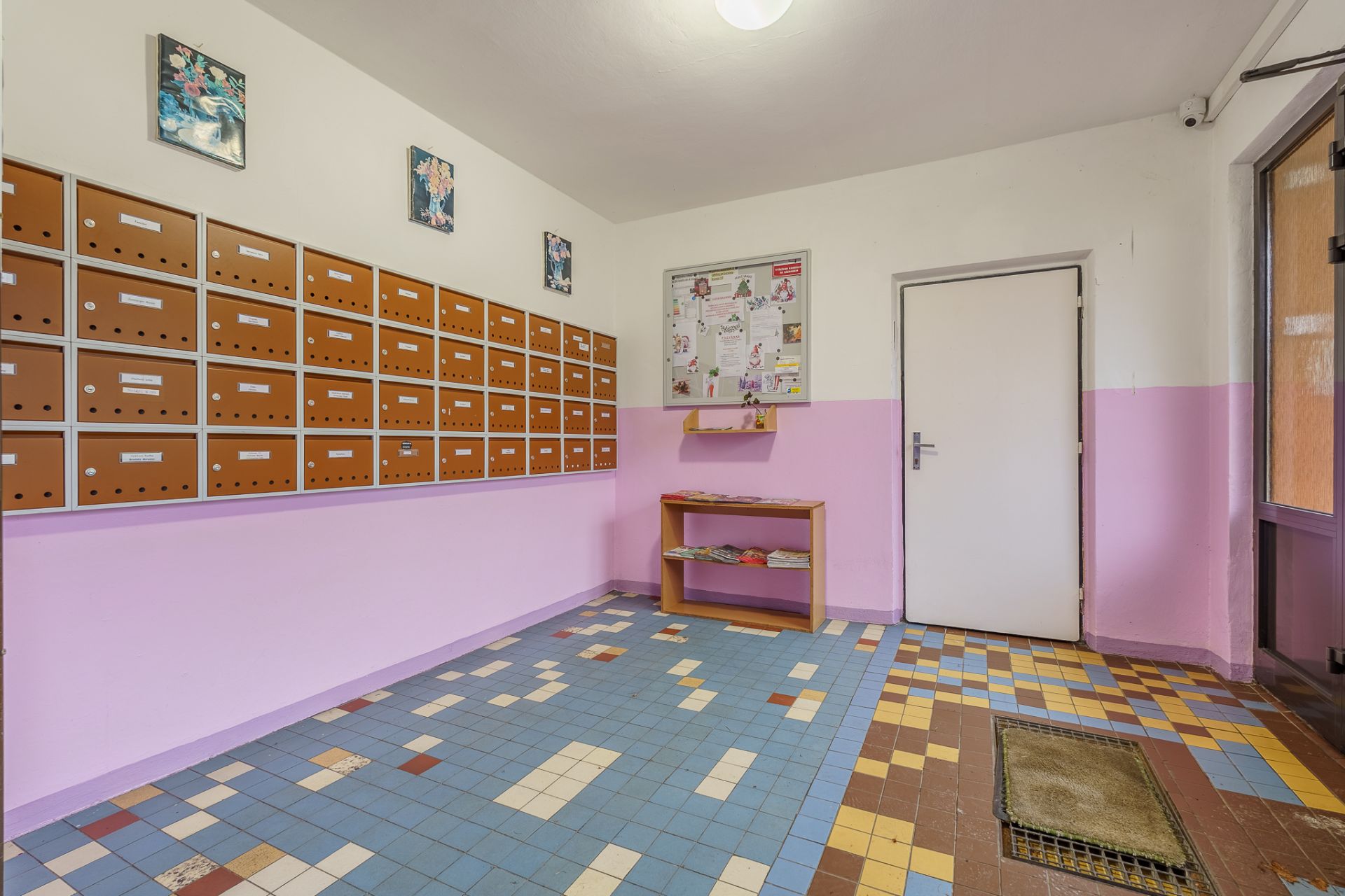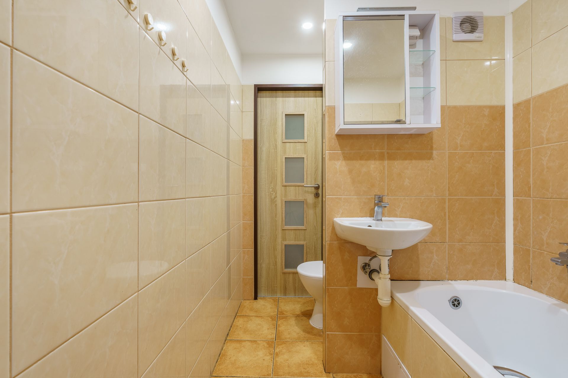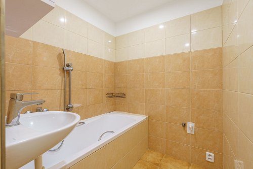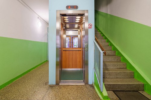 Byt disponuje praktickým uspořádáním, které zahrnuje pohodlnou koupelnu s vanou, ideální pro relaxaci. Součástí bytu je také spíž, která nabízí dostatek úložného prostoru pro vaše potřeby. V domě se nacházejí dva výtahy, což zajišťuje snadný přístup do vašeho nového domova.